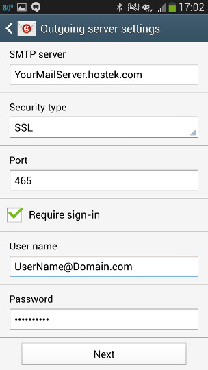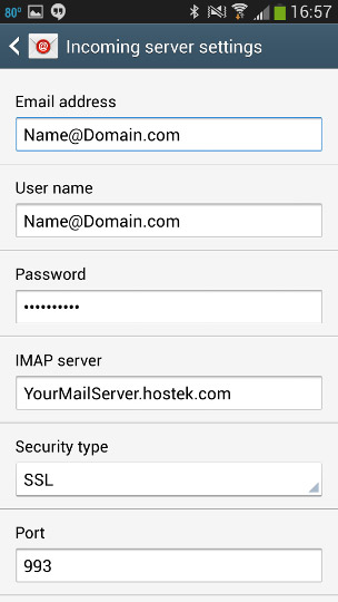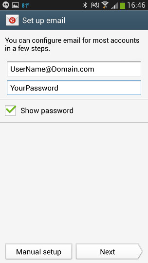 - By default Android will not include your domain to the Username field. You will have to add this.