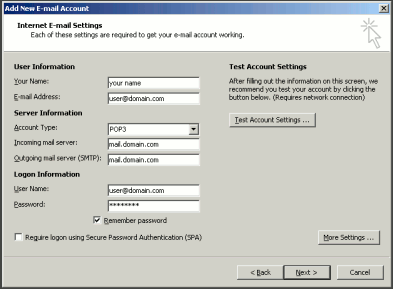 Note: Do NOT check the box "Log on using Secure Password Authentication".