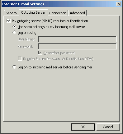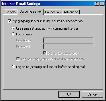 - IMPORTANT! On the Outgoing Server tab, check My outgoing server (SMTP) requires authentication.